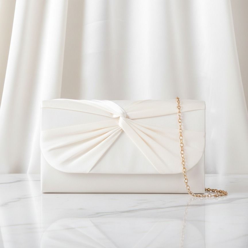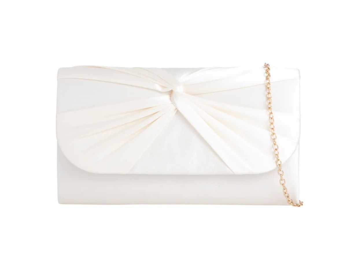 Společenská kabelka saténová s uzlem ivory