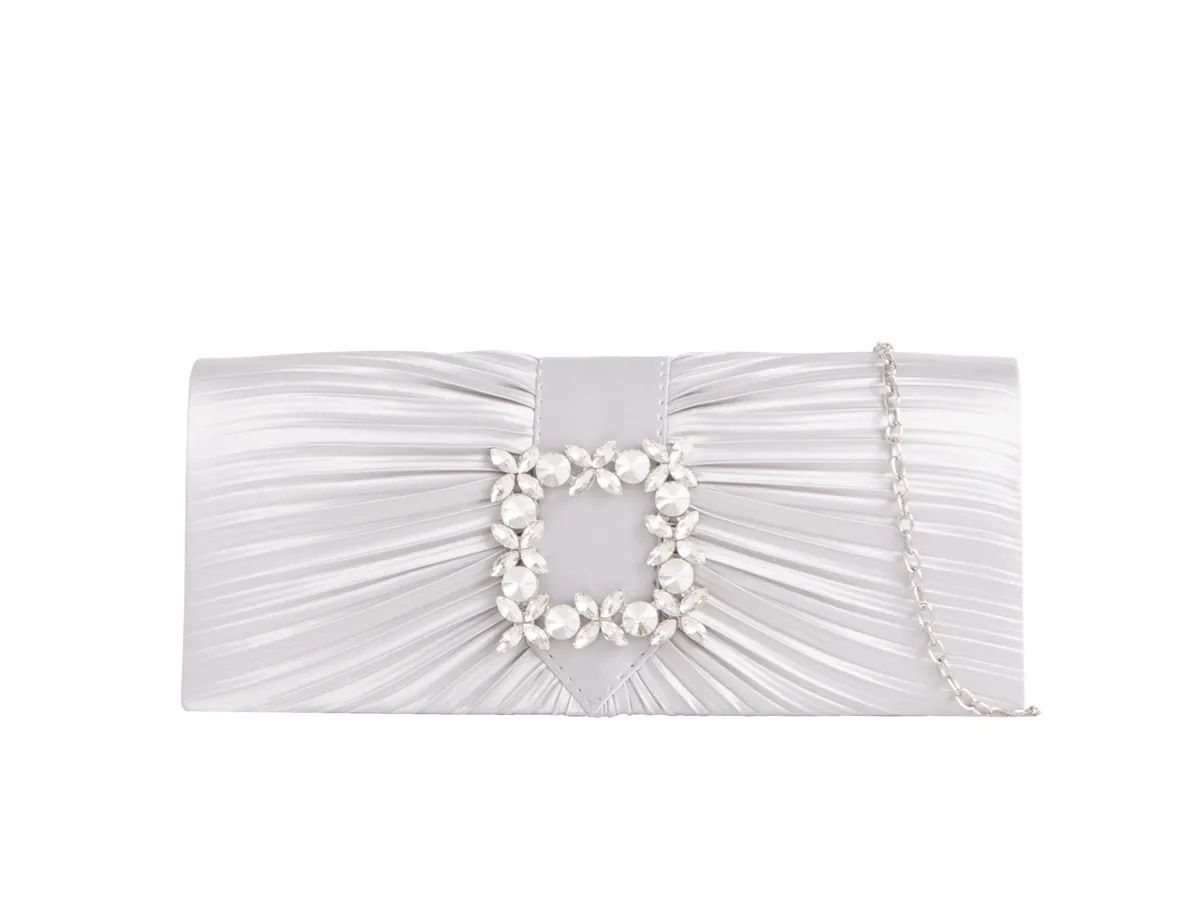 Společenská kabelka se stříbrnou ozdobou stříbrná