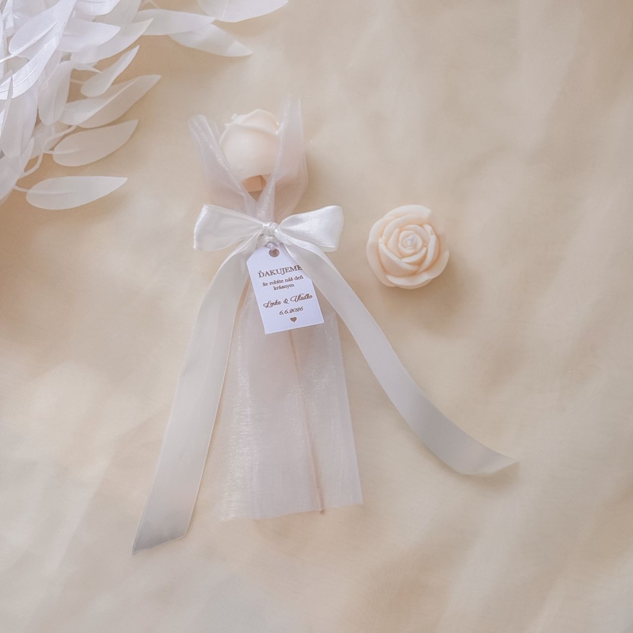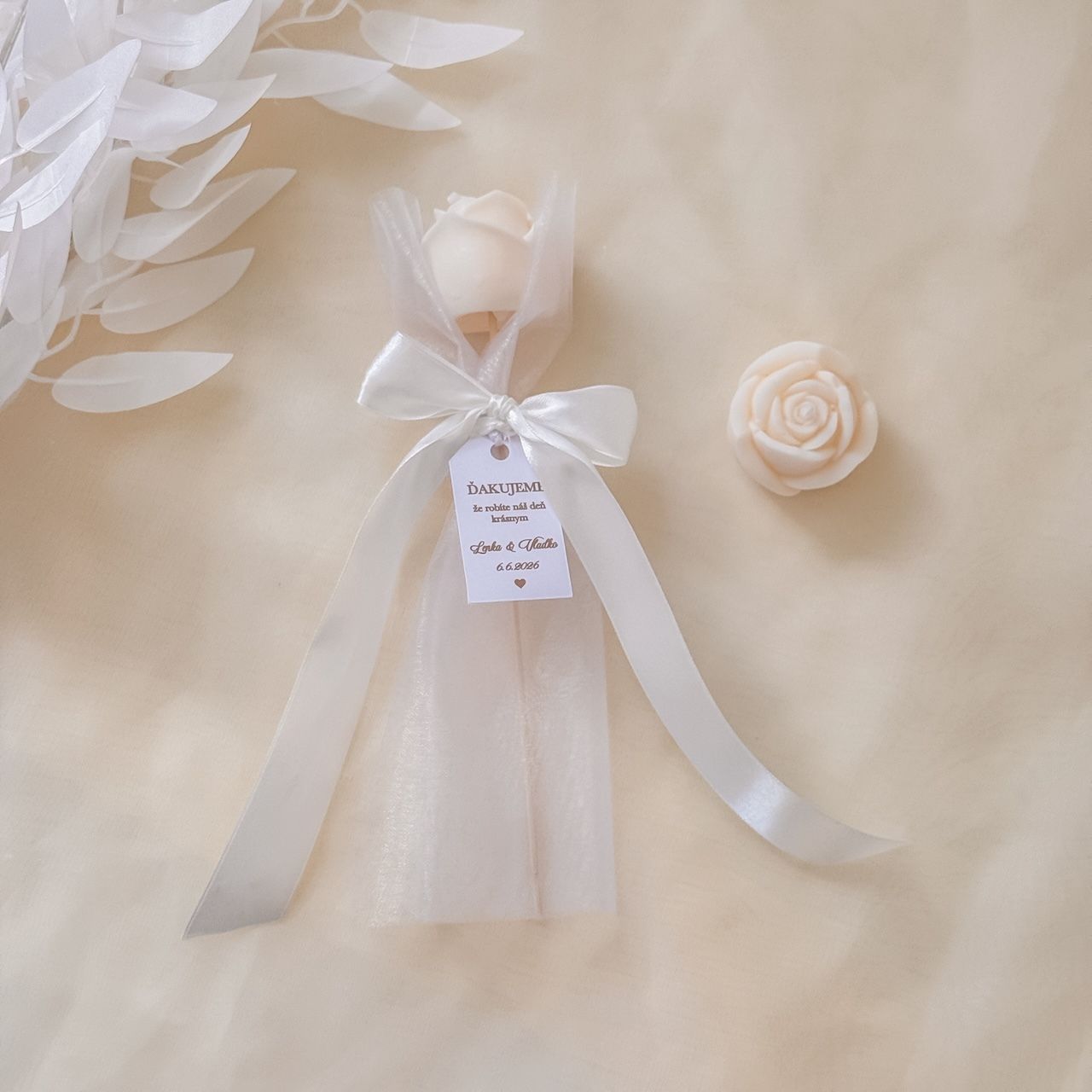 Tento dárek pro svatební hosty v podobě sójové svíčky je projevem vděku, který doslova rozzáří domovy vašich blízkých. Ručně odlévaný přírodní vosk v elegantním balení s vašimi jmény a datem svatby je nejen stylovým doplňkem svatební tabule, ale také trvalou vzpomínkou na váš svatební den. Díky čistému hoření sójového vosku a jemné vůni je to dárek, který si hosté skutečně vychutnají.
