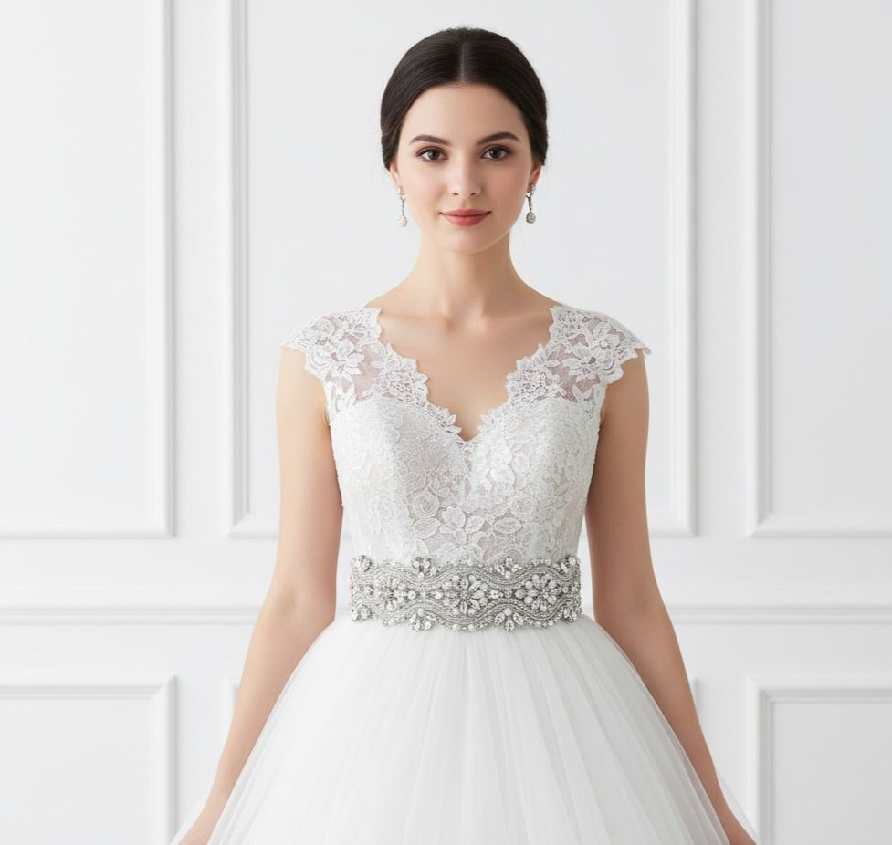 Ozdobu je možné zkrátit podle potřeby a následně našít na šaty.