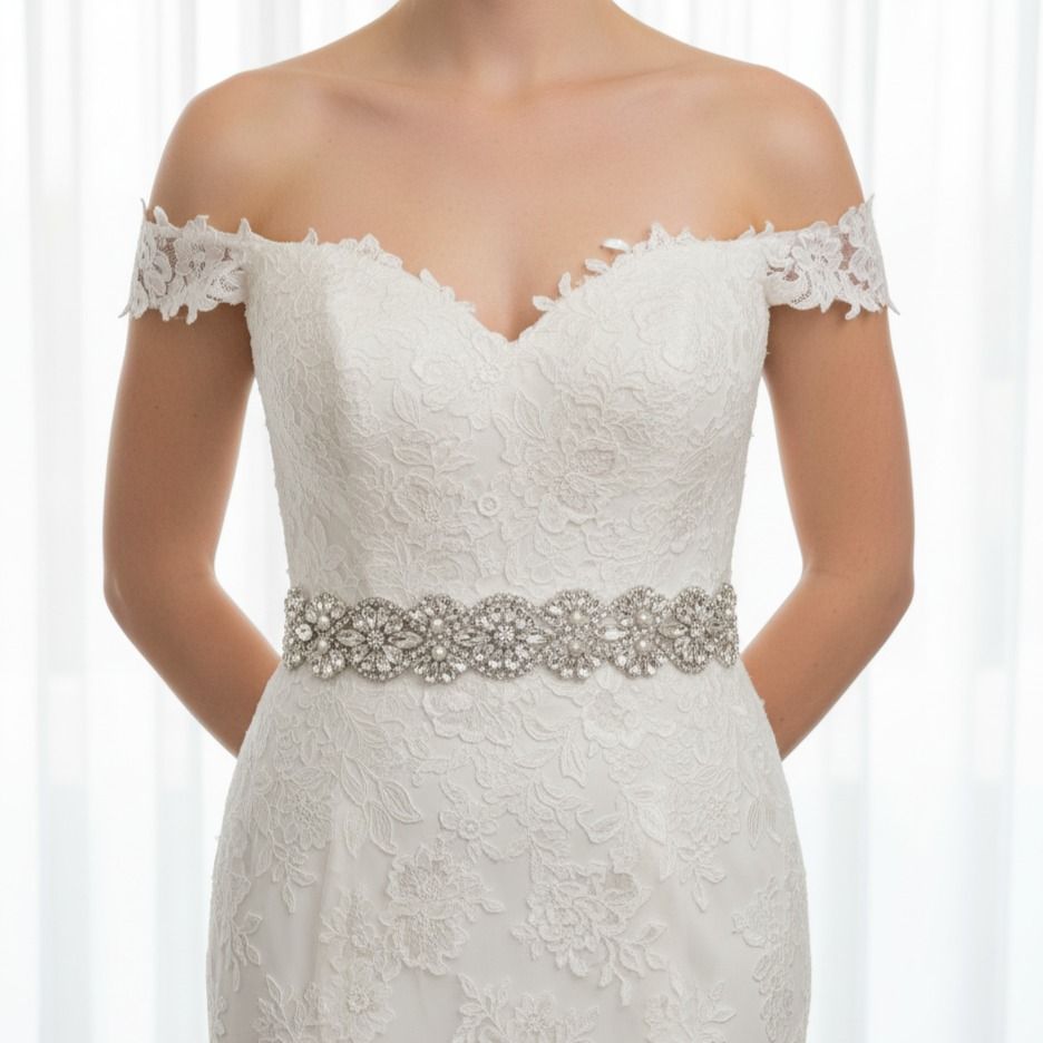 Ozdobu je možné zkrátit podle potřeby a následně našít na šaty.