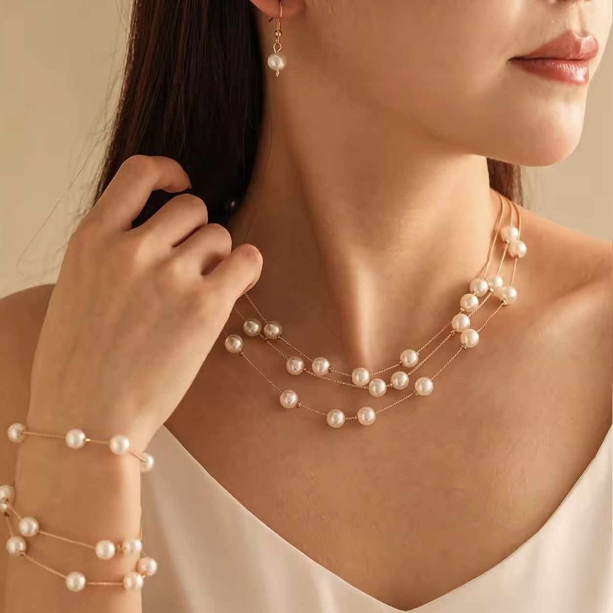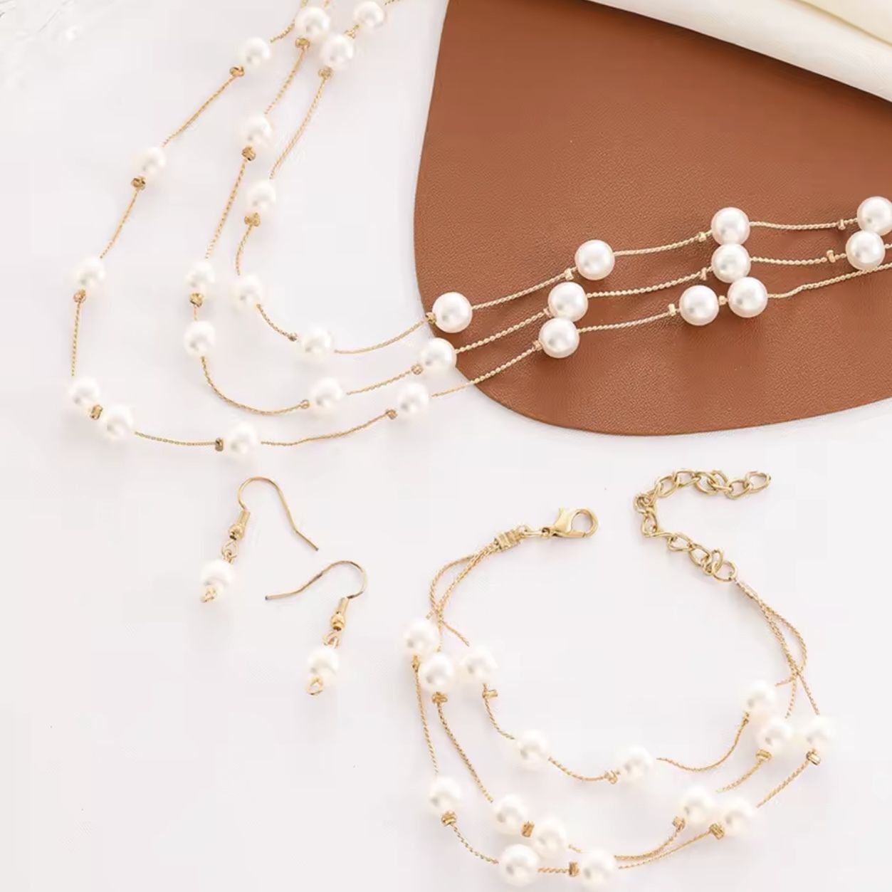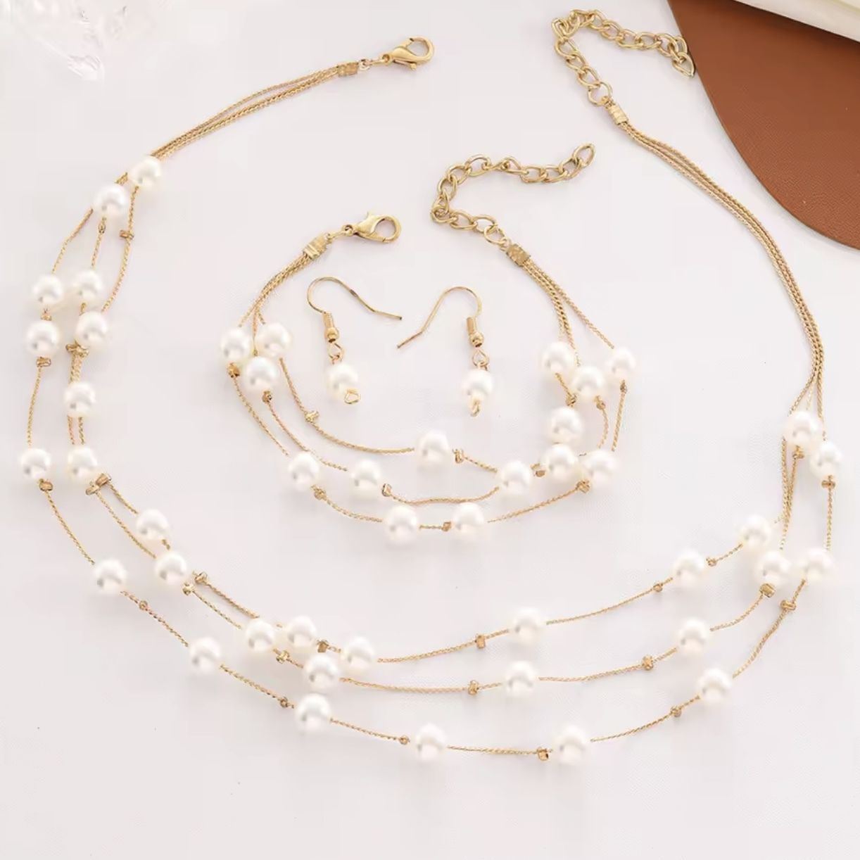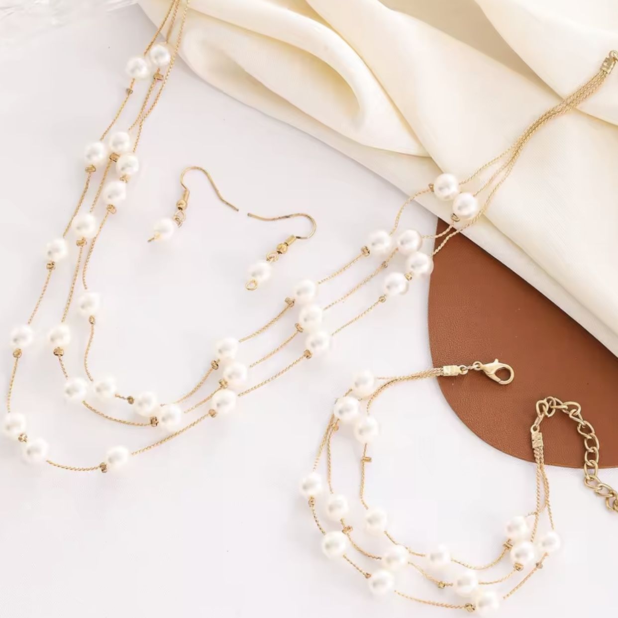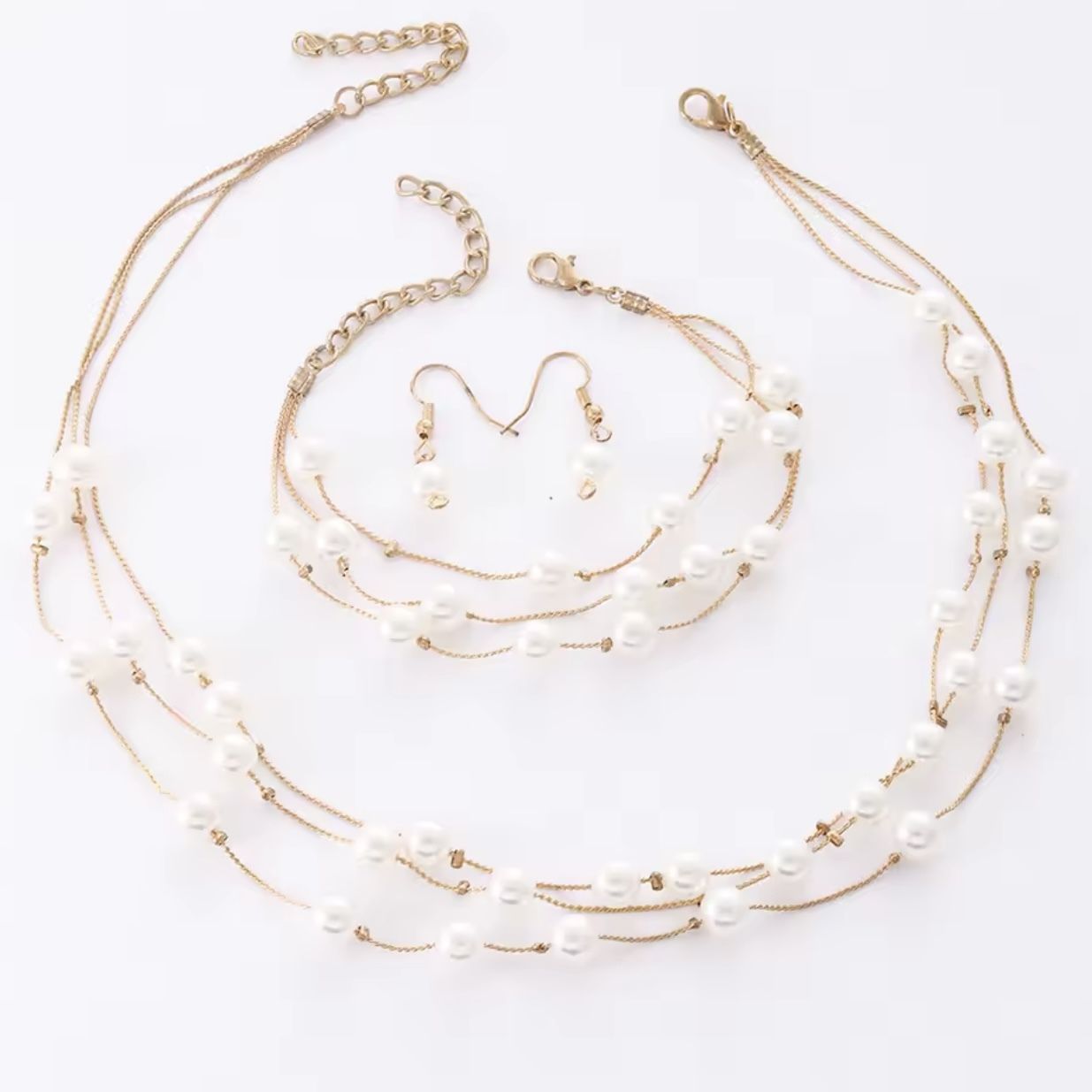 Set bižuterie - náhrdelník, náramek a náušnice zlatý perličkový