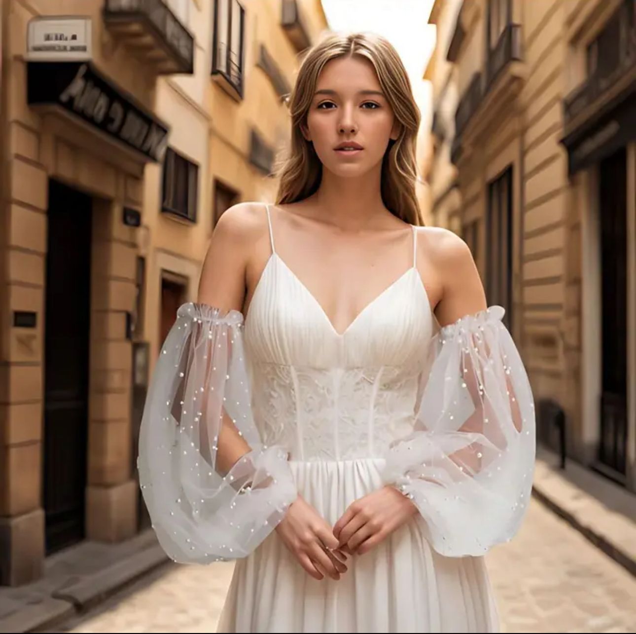 Ozdobné rukávy na svatební šaty. Rukávy jsou vyrobeny z kvalitního, padavého tylu. Jsou detailně a kvalitně propracované.