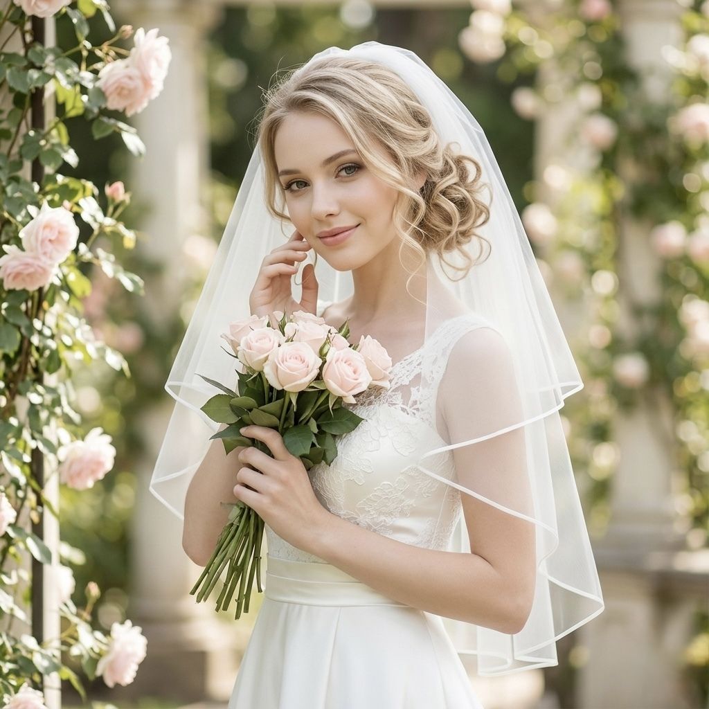 Jednoduchý svatební závoj pro nevěstu. Závoj se skládá ze 2 vrstev. Upevnění pomocí upevňovacích hřebínku. Svatební závoj je hladký.