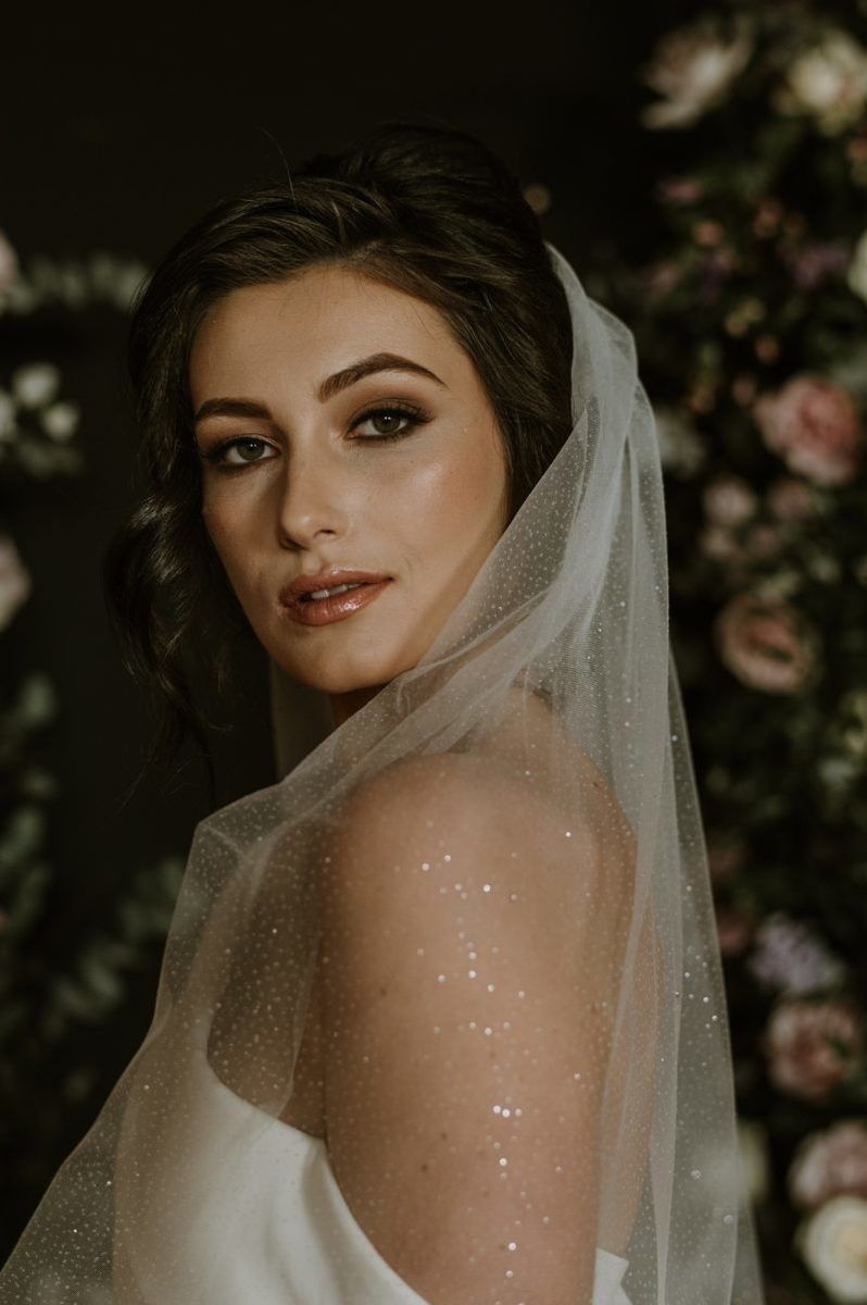 Krásný elegantní svatební závoj s jemnými třpytkami. Skládá se z 1 vrstvy. Závoj je ukončen hřebínkem.