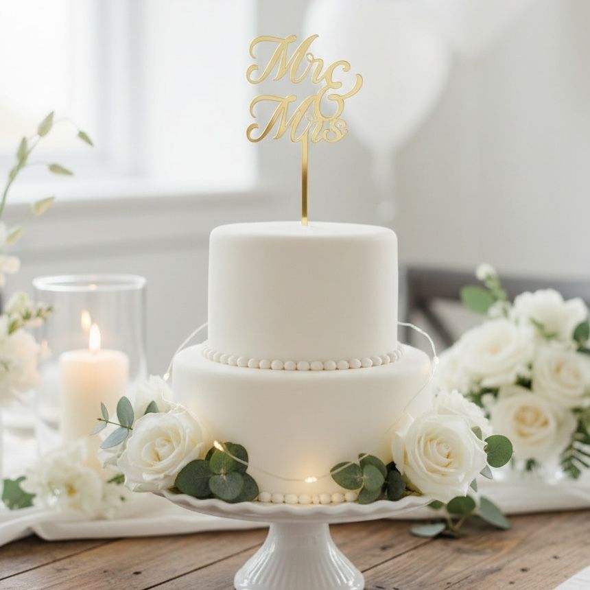 Dodejte svému dortu korunu, která mu náleží. Tento stylový zápich s vašimi jmény nebo romantickým nápisem okamžitě promění každou cukrářskou kreaci v osobní umělecké dílo. Díky preciznímu zpracování a lehkému materiálu perfektně drží, skvěle vypadá na fotkách a po svatbě vám zůstane jako originální památka. Dokonalý detail pro váš sladký vrchol večera.