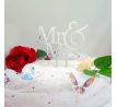 Stříbrný akrylový zápich na svatební dort Mr. & Mrs.