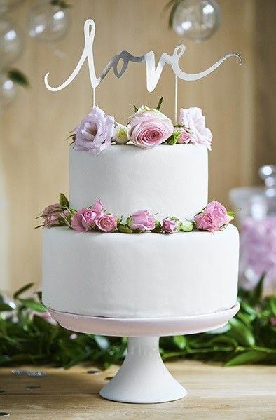 Nápis Love, který slouží jako zápich do svatebního dortu.