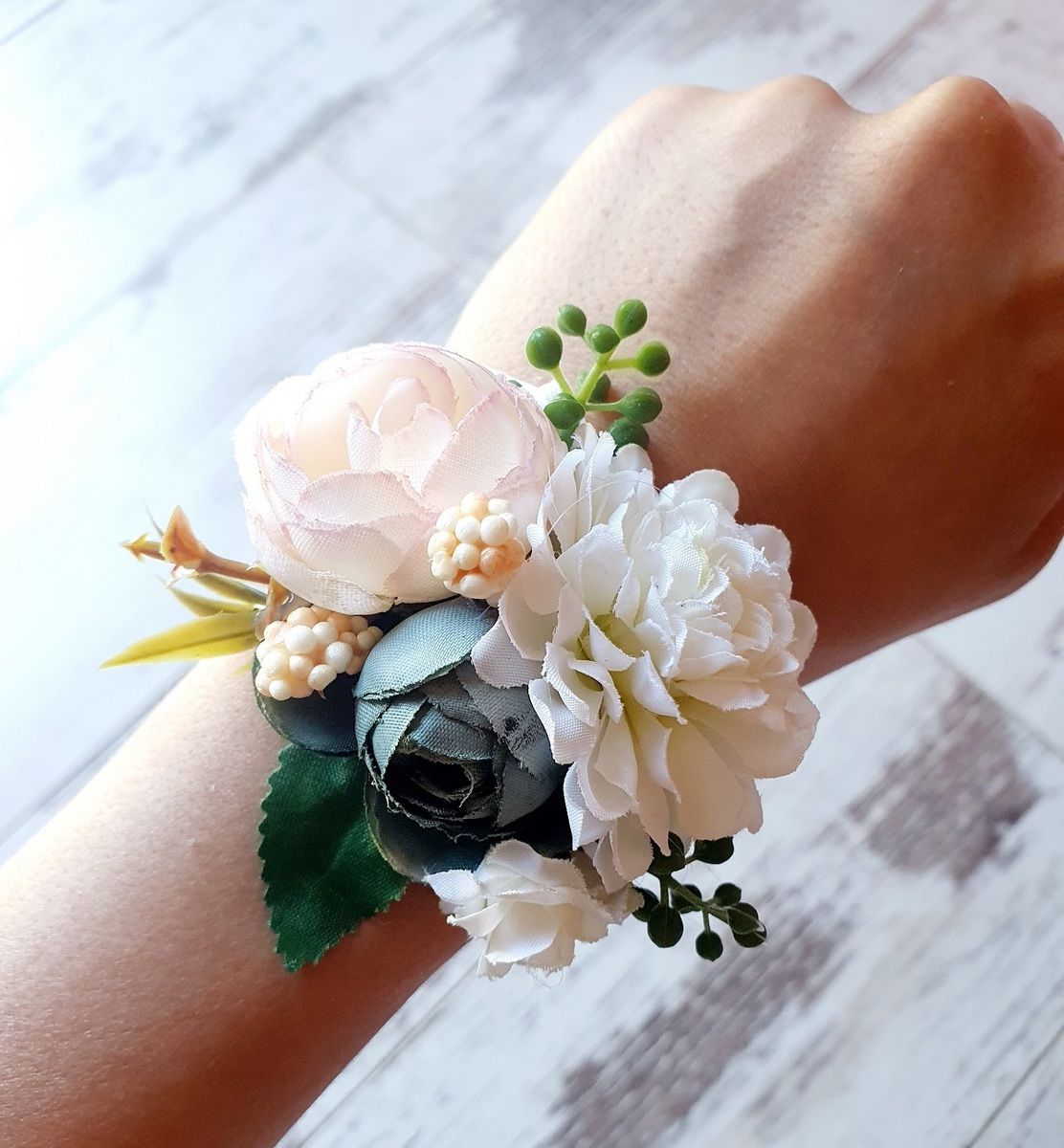Krásné květinové náramky, se kterými potěšíte každou družičku. Náramky jsou vyrobeny z umělých květin a po svatbě budou pěknou vzpomínkou.