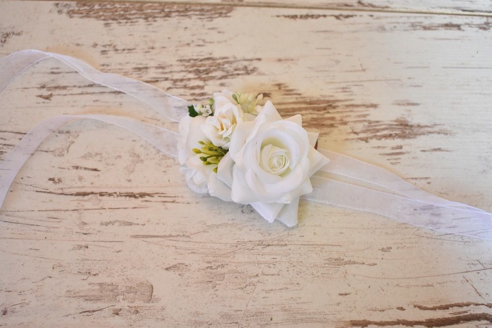 Krásné květinové náramky, se kterými potěšíte každou družičku. Náramky jsou vyrobeny z umělých květin a po svatbě budou pěknou vzpomínkou.