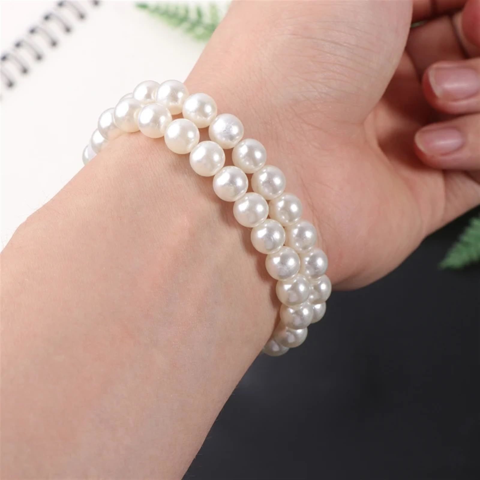 Část náramku, která je kolem zápěstí, je vyrobena z bílých perliček.