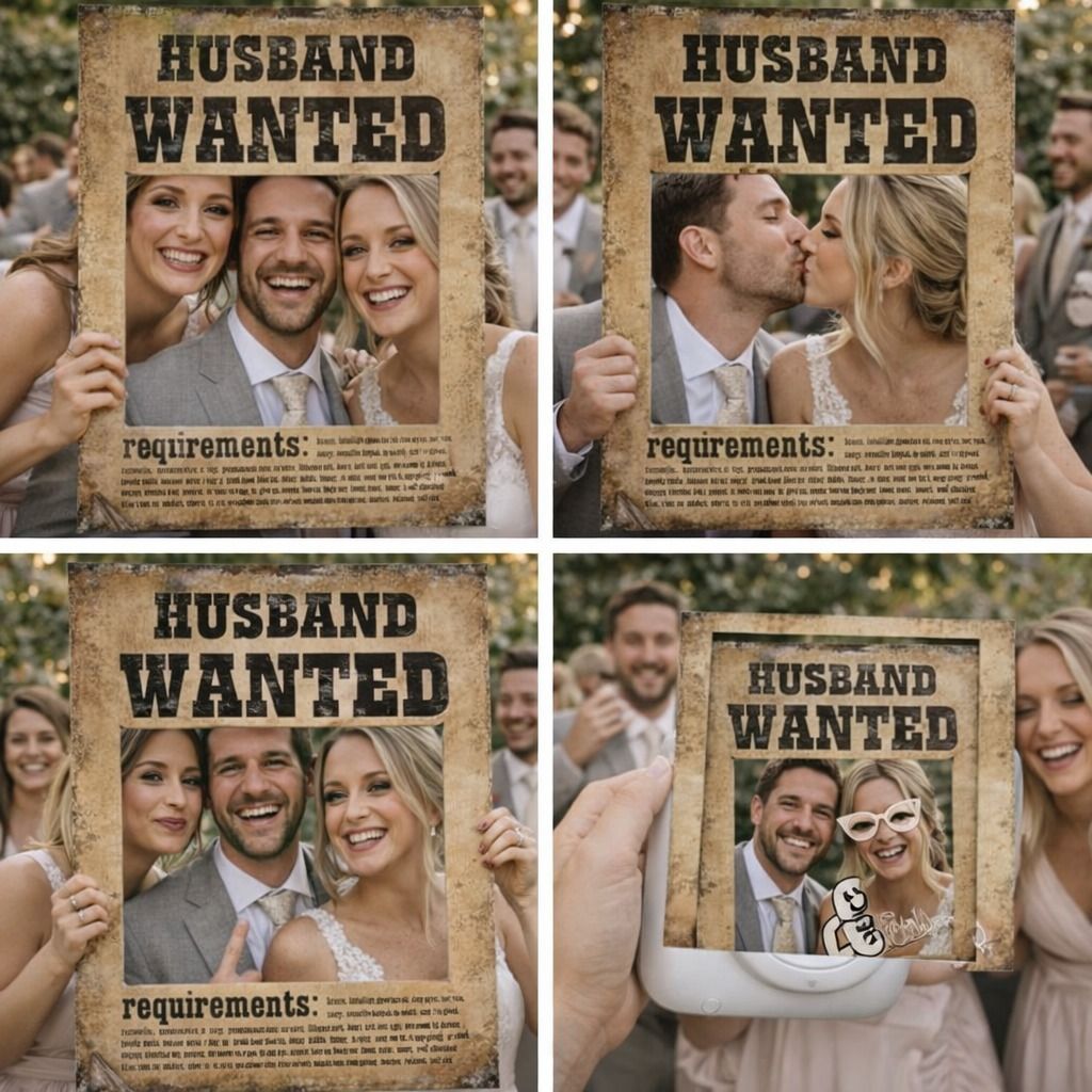 Rámečky na focení Wanted. Jeden rámeček je s nápisem Wife wanted a druhý s nápisem Husband wanted.