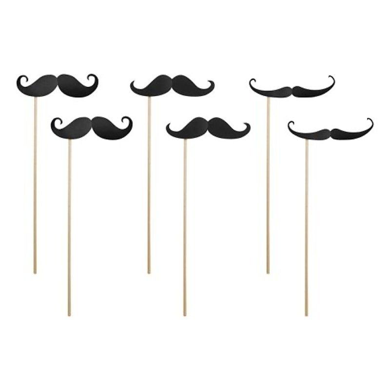 Svatební rekvizity na focení v podobě knírku. V balení jsou tři typy knírku po 3ks s dřevěnými rukojeťmi ve velikosti cca 24cm.