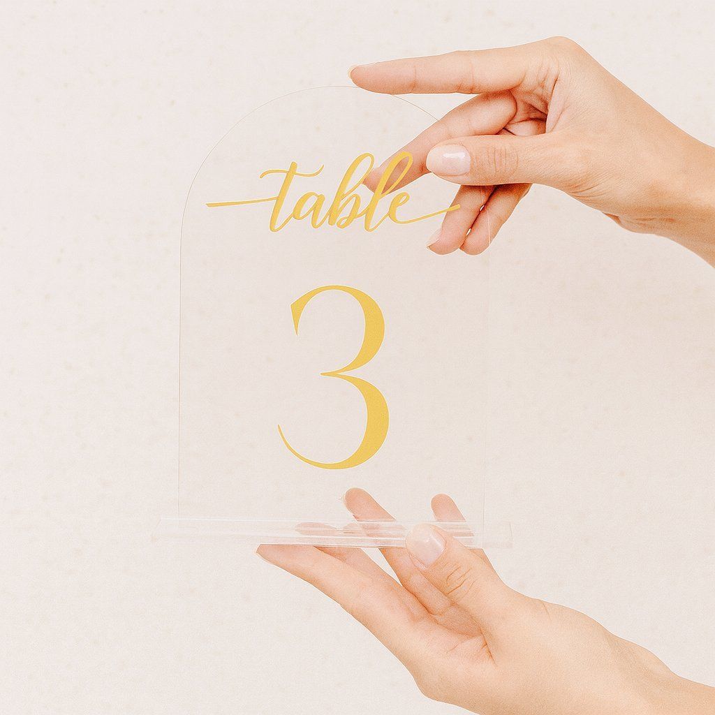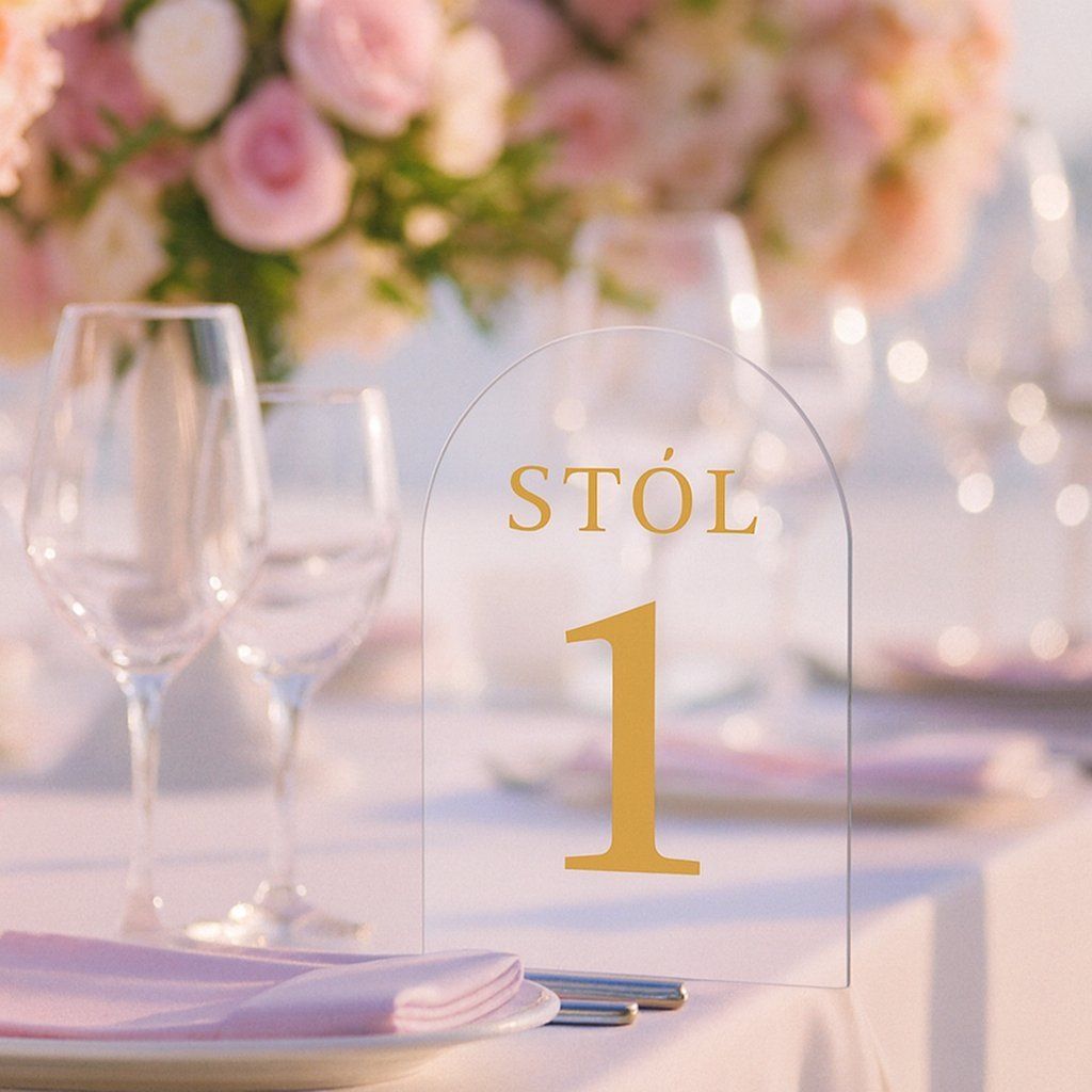 Akrylová čísla na svatební stůl. Čísla jsou na akrylovém podkladu vyrovnána z nalepovací fólie.