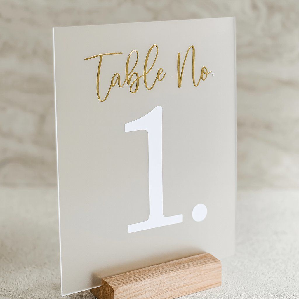 Akrylová čísla na svatební stůl. Čísla jsou na akrylovém podkladu vyrovnána z nalepovací fólie.