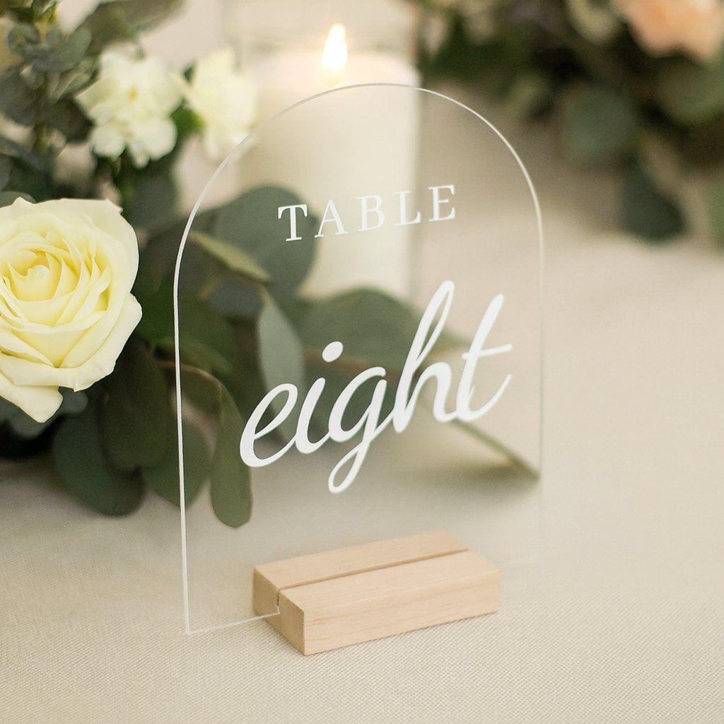 Akrylová čísla na svatební stůl. Čísla jsou na akrylovém podkladu vyrovnána z nalepovací fólie.