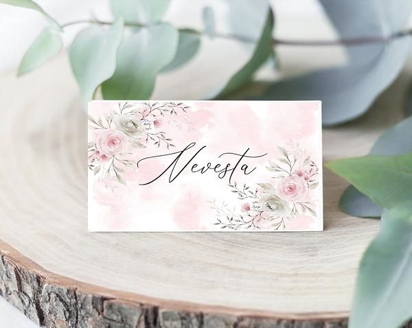 Materiál: tvrdý papír Velikost: 9x5 cm Cena za jeden kus. Jména na jmenovky posílejte na mail info@svatbickovo.cz v souboru Excel.