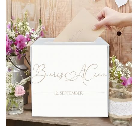Svatební krabička na telegramy a peníze v bílé barvě.