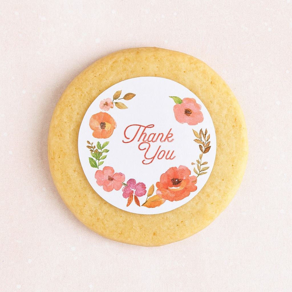 Samolepky s potiskem květů můžete použít na dárky pro hosty nebo na krabice se zákusky.