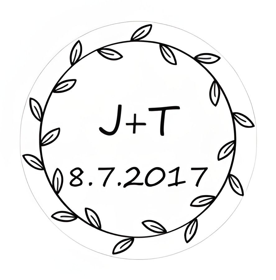 Svatební nálepky s vlastním textem, například s jmény ženicha a nevěsty, datem svatby, či iniciálami.