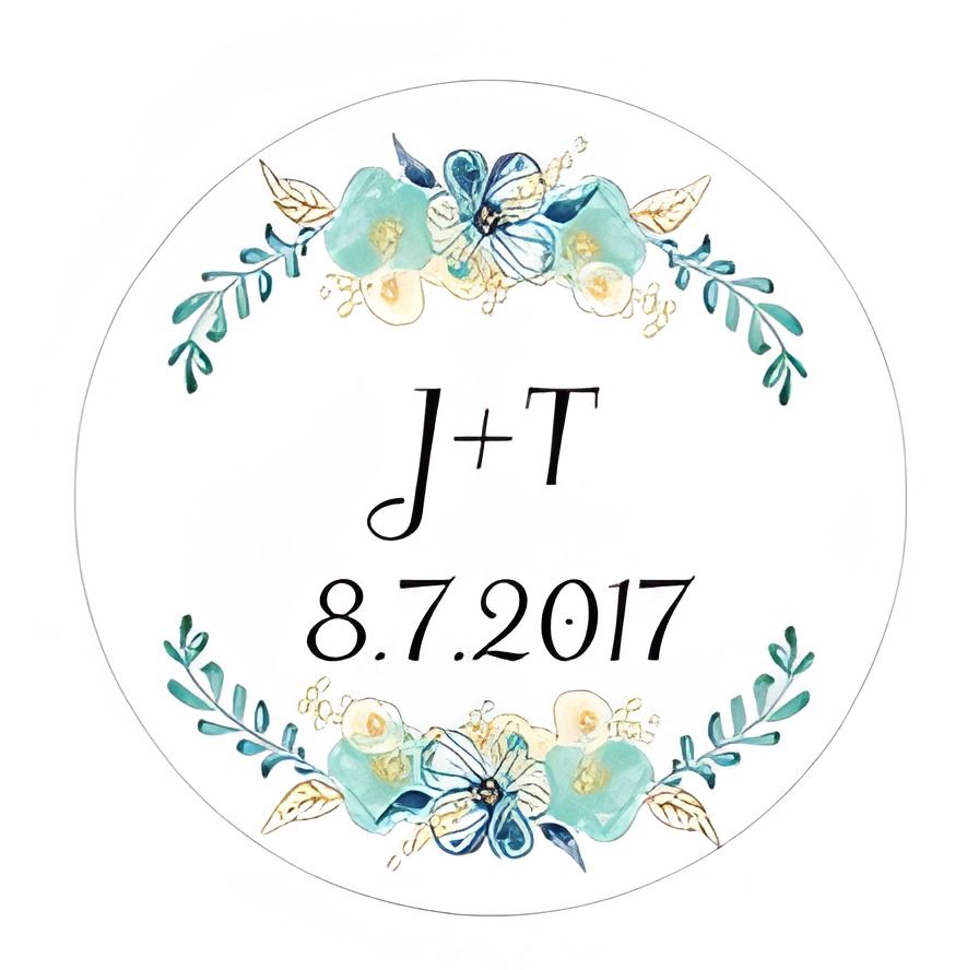 Svatební nálepky s vlastním textem, například s jmény ženicha a nevěsty, datem svatby, či iniciálami.