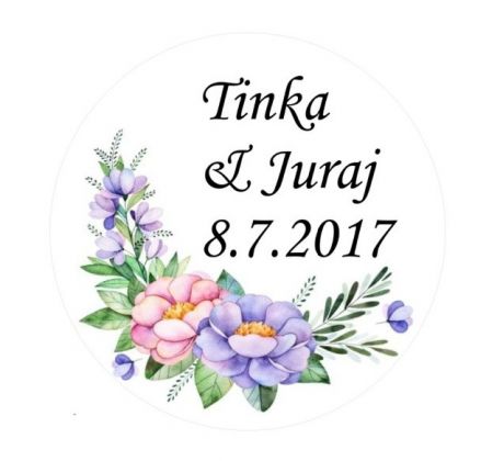 Svatební nálepky s vlastním textem, například s jmény ženicha a nevěsty, datem svatby, či iniciálami.