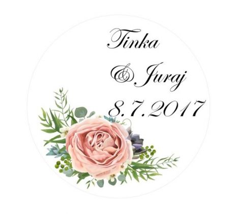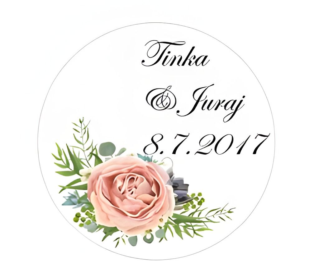 Svatební nálepky s vlastním textem, například s jmény ženicha a nevěsty, datem svatby, či iniciálami.