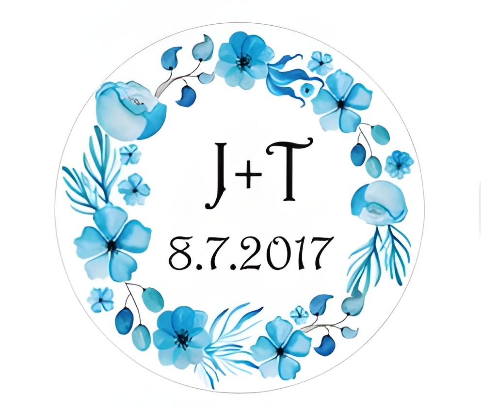 Svatební nálepky s vlastním textem, například s jmény ženicha a nevěsty, datem svatby, či iniciálami.