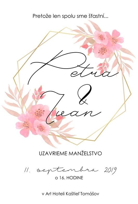 Oznámení je možné vytisknout nebo vytvořit jako elektronické svatební oznámení, které prostě rozešlete mailem. Formát JPG nebo PDF.