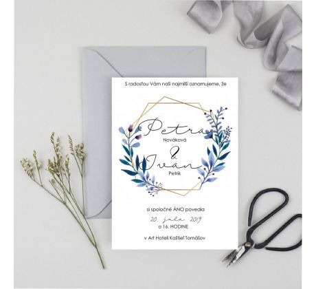 Svatební oznámení Hexagon květiny 5 Tištěné oznámení (zadejte počet ks) skladem 40,- CZK (2,- €)