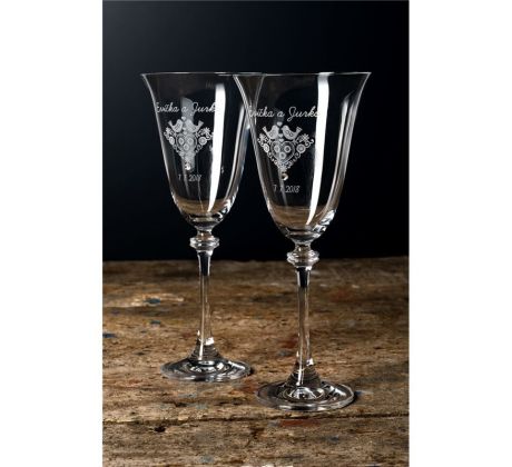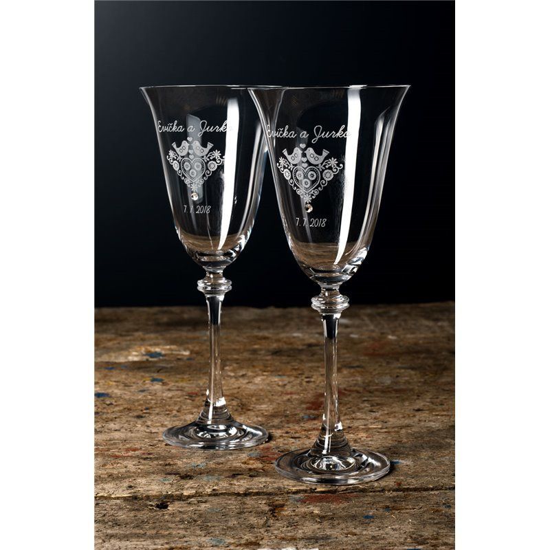 Pár ručně broušených svatebních sklenic zdobenými se Swarovski Elements. Balené v elegantní krabičce. Uvedená cena je za dvě sklenice včetně krabičky.