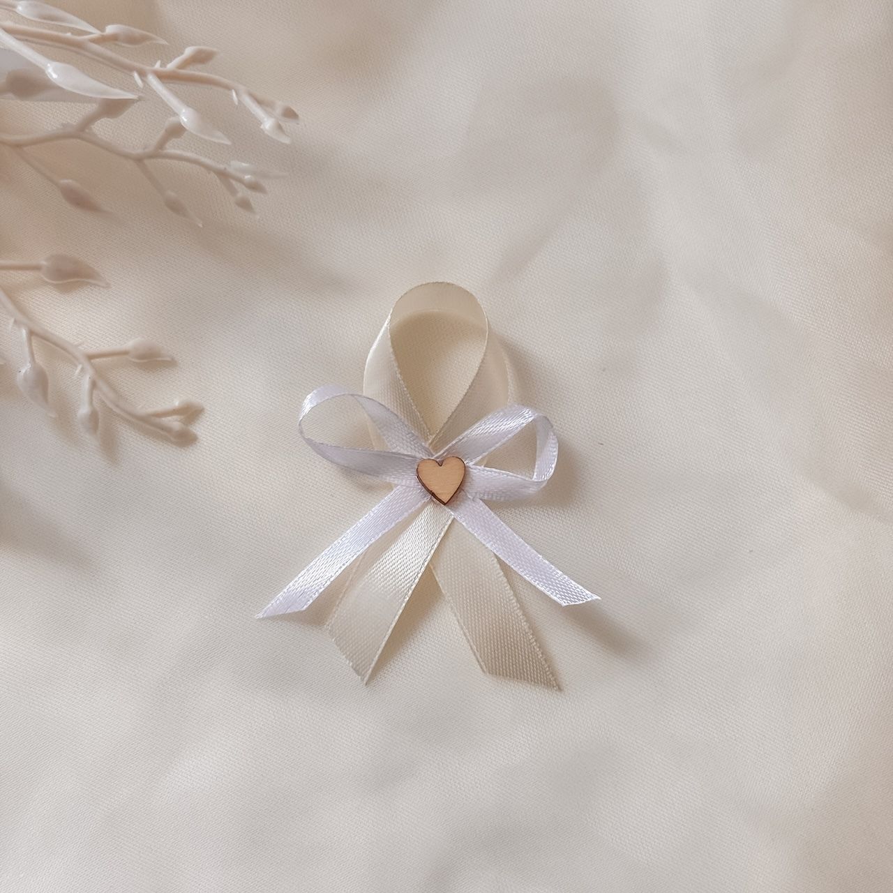 Elegantní svatební vývazky, které jsou symbolem úcty a důležitosti vašich nejbližších hostů. Tyto vkusné drobné vývazky jsou vyrobeny z kvalitních saténových stuh a doplňků, aby po celý den zdobily klopy vašich svatebčanů a dodaly jim pocit sounáležitosti. Díky široké škále barev je hravě sladíte se svou svatební výzdobou.