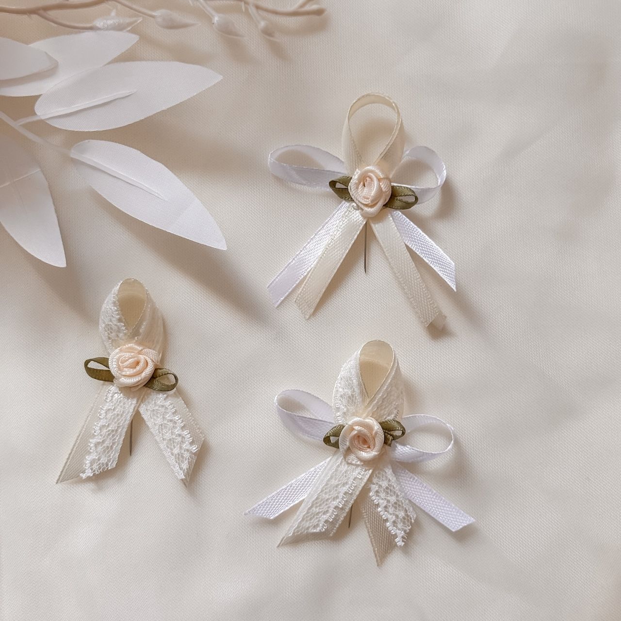 Každý vývazek si můžete objednat v provedení, které vidíte na fotce (tedy jako variantu pro svatební hosty), nebo si můžete zvolit větší, více zdobenou variantu pro svatební rodiče či svědky. Každý kus vám rádi přizpůsobíme podle vašich představ, ať už barevně, nebo změnou použité ozdoby.